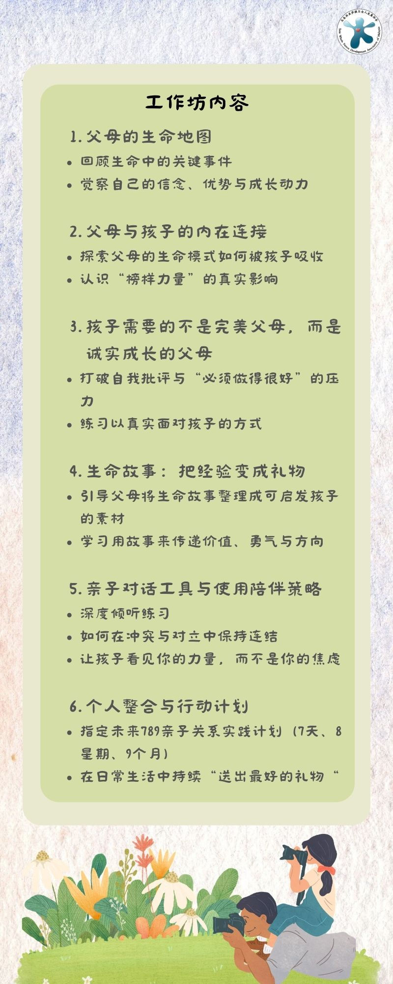 《送出最好的礼物:父母如何善用自己的生命来启发孩子的人生?》亲子工作坊