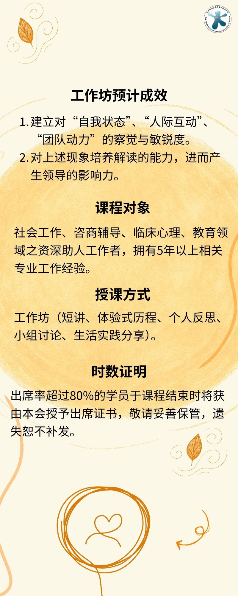 此乃助人专业培训,若您是对个人成长课程有兴趣,欢迎关注我们其他公开课程。